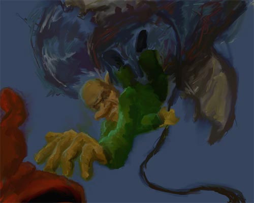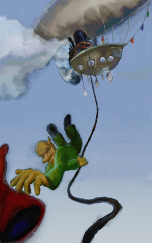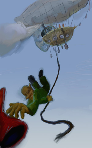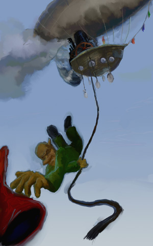 okay here´s the story: on his first flight on the gss edwina, mr. gnommsen looses his beloved hat due too a sudden rush of wind. Because its a good hat and he really likes it, he quickly grabs a rope and jumps overboard, trying to get his hat back: