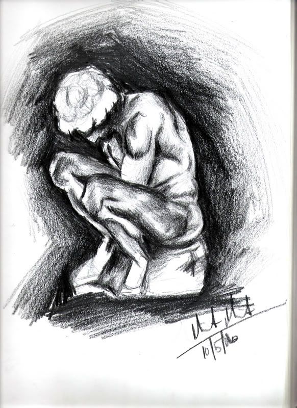 michael-olszak: Thnx man! Can’t believe you did those on the computer…they look so much like drawings. I’ve heard of that program but have never used it. Looks like it could be cool tho’! It’s awesome to see how many werks you’ve been posting. You might want to try modeling the form a little bit more to really give it that sense of 3D. I’d really reccomend slowing down and really studying the figure and picking areas of intrest to pop more, by applying more detail, or pushing the contrast of light lights and dark darks. Also, it’s good to re-think the placement of forms once you’ve laid them down if they don’t seem quite right as opposed to just leaving them. Once you have your initial sketch down and you go back over it, analyzing it and pulling the details togather through shading, if you find that certain areas don’t add up, go ahead and try and figure out why…then erase it and re-position them to obtain the correct placement. That’s really how you start to learn and really improve, by getting things a little off, then stopping to figure out why, and then figuring out how to correct them. Because then, after you do that over and over, you start to apply what you learned from the previous drawing to the next, and those mis-observations don’t happen as often because you know how to catch yourself ahead of time. I’m not tryin’ to be pedantic…and I still have a long way to go myself, but hopefully I can improve and help others improve as well!