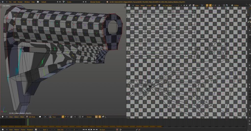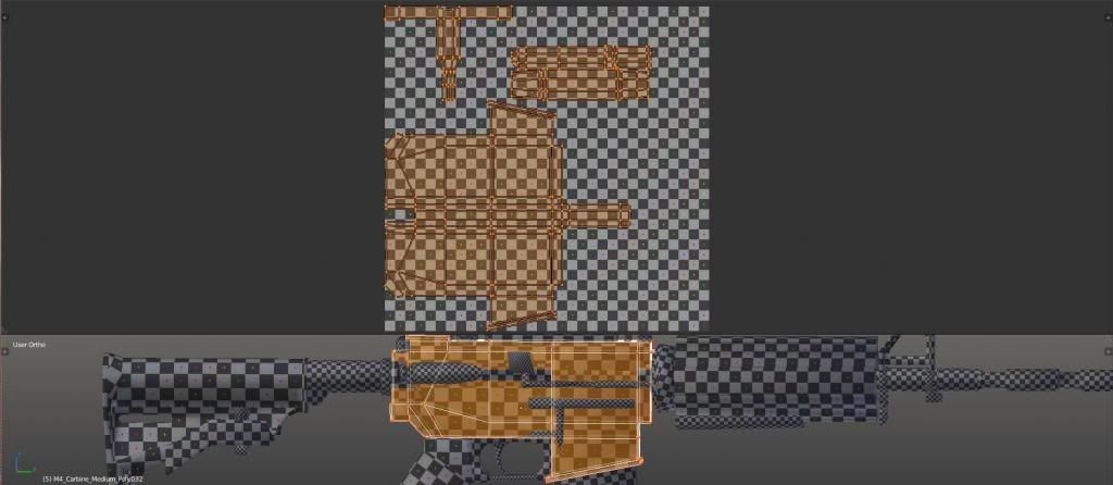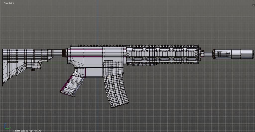 To validate the projected detail from high to medium poly the GLSL shader was enabled as seen in fig 2, my aim has always been from this test M4 WIP exercise’s inception is that the gun “looks” the real deal in game to the player, to some extent I think this has been achieved.