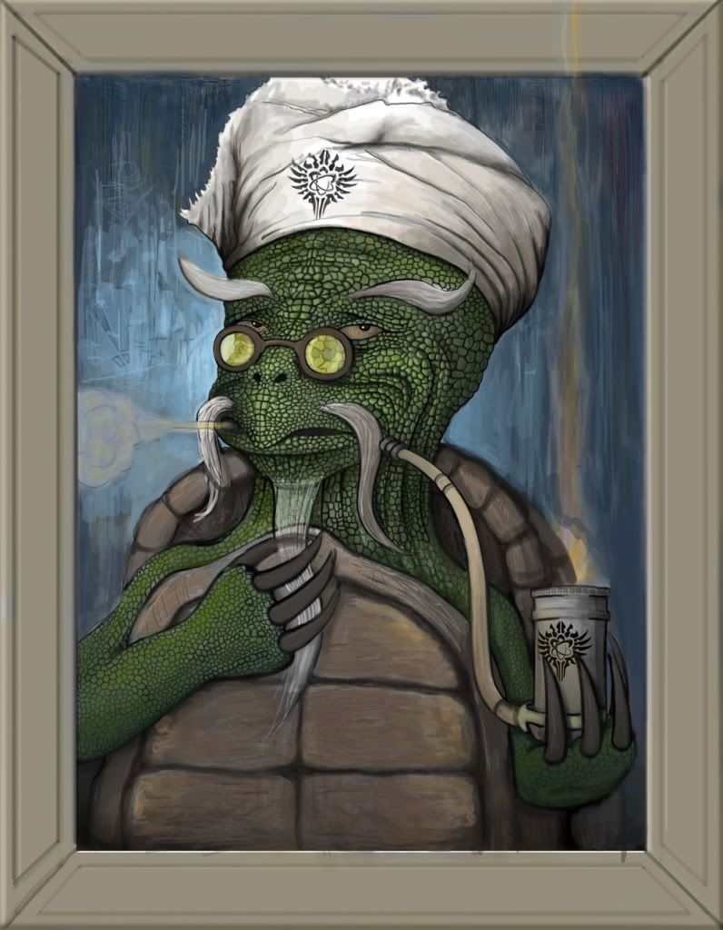 Ataulfo: Yeah, I think, Walrus is right. Your picture would fit within the first mini-contest, War General Portraits. Chosing a turtle as a wise ambassador is a good idea (slow, considerating everything properly …), but by being humanoid (not on four legs) it seems to be everything else than a pet. I just think about a movie called “Momo”, there also was a wise turtle within. Perhaps work with the attributes and the expression, while posing something more animal-like?