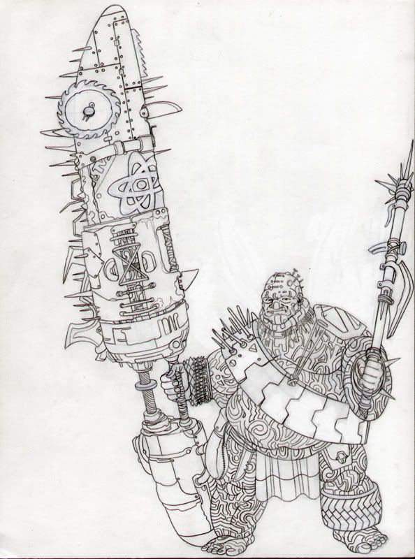 This is a Warlord named Bok. Bok has a Lightning-enhanced artifact weapon constructed from non-functioning machinery and metal. He hits things with it.