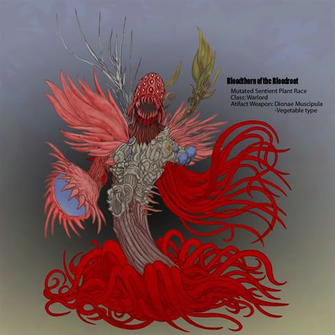 This is a typical Bloodthorn, an environmentally-mutated Warlord with a Vegetation-based artifact weapon capable of crushing, ripping and converting to nutrition anything it can reach.