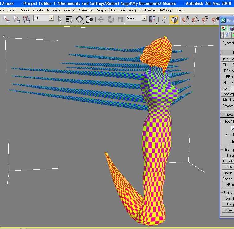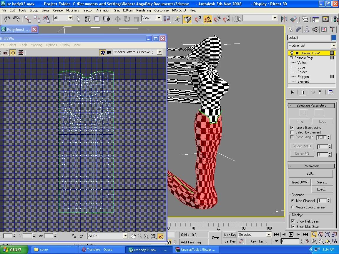 Unwrapping the base mesh, should have done this before scultping really. I hope I can bake my High freqency mesh onto this with out much trouble.