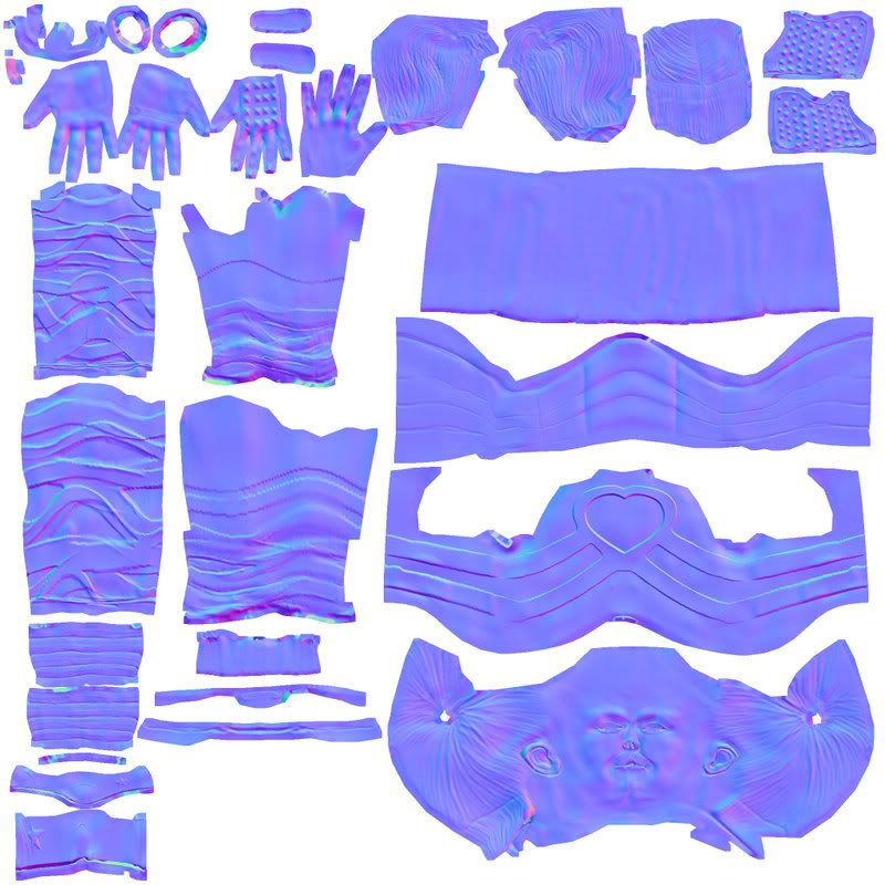 here is a pic of the concept next to the working model. The post is rough right now. I still have some weight painting to do. I also need to tweak the dress and the pigtails…among other things. C&C welcome! I am using orange, green and light blue lighting. I lost my shadows somewhere in tweaking, I need to get those back…Next opst will have some shadows. the backlight may be blowing them out.