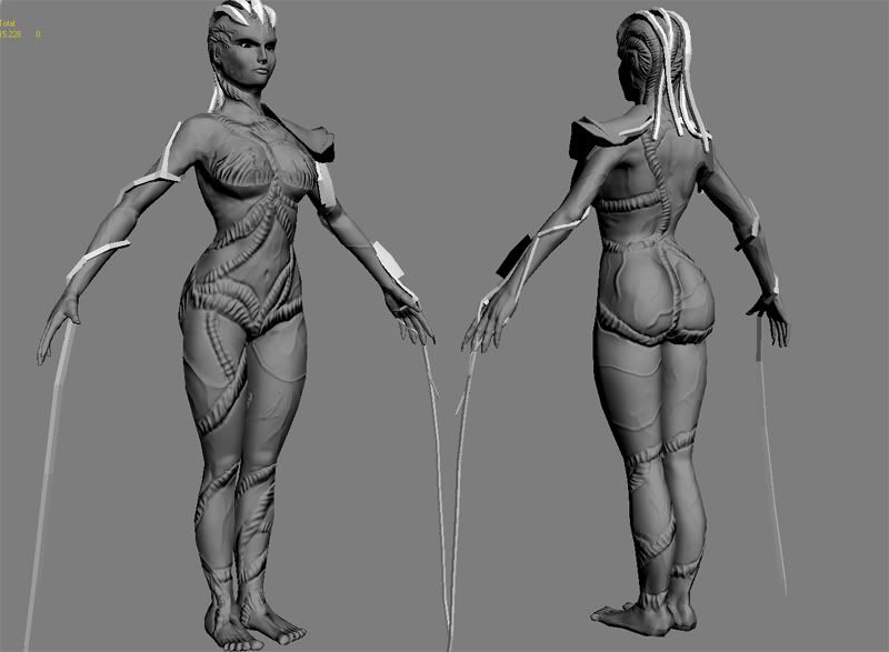 I´ve already started with the diffuse map channel, so I think I can post some screen shoots here, I didnt started with the body yet, so dont consider that part ok? and its just normal + diffuse got to work with the speculars… hope till wednesday I can have all maps done, then I can play with some unreal shaders ![]()