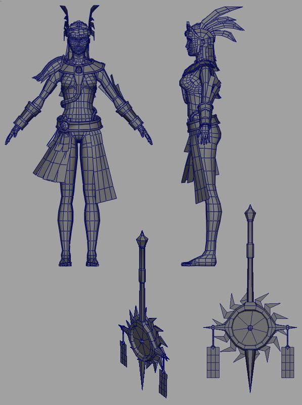 The aztec look is good, but as rart said, she’s too fragile by now. If she goes to the battlefield, I think she needs some protection against damage. And you must to add something to her that make her attractive for the players. Something that shows she is strong, or dangerous.