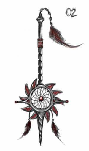another dreamcatcher concept (now it looks like a weapon, and she can use as a spear too)