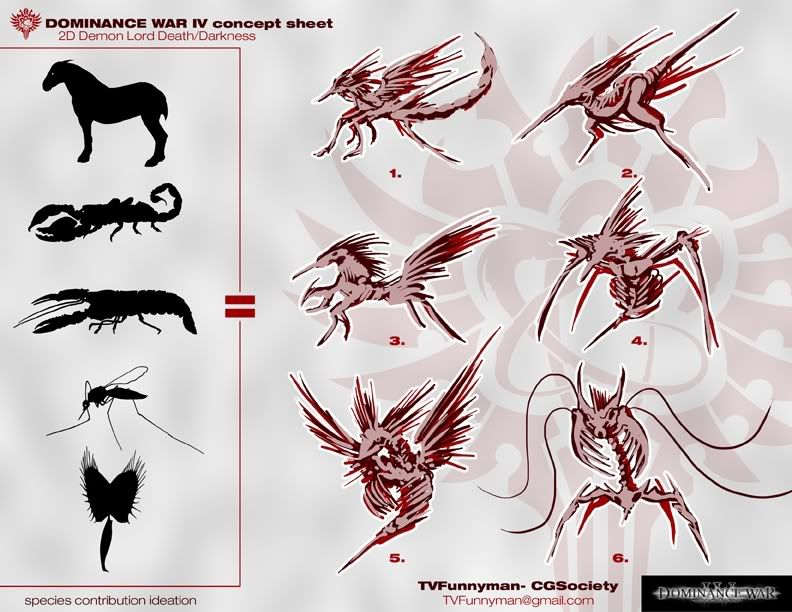 Someone had recently asked me to draw a pegasus and I think some of that got in there with the horse’s upright stance and concept drawings of wings. I guess my final design evolved as some kind of evil pegasus… a concept that on the face of it doesn’t seem that particularly terrifying.
