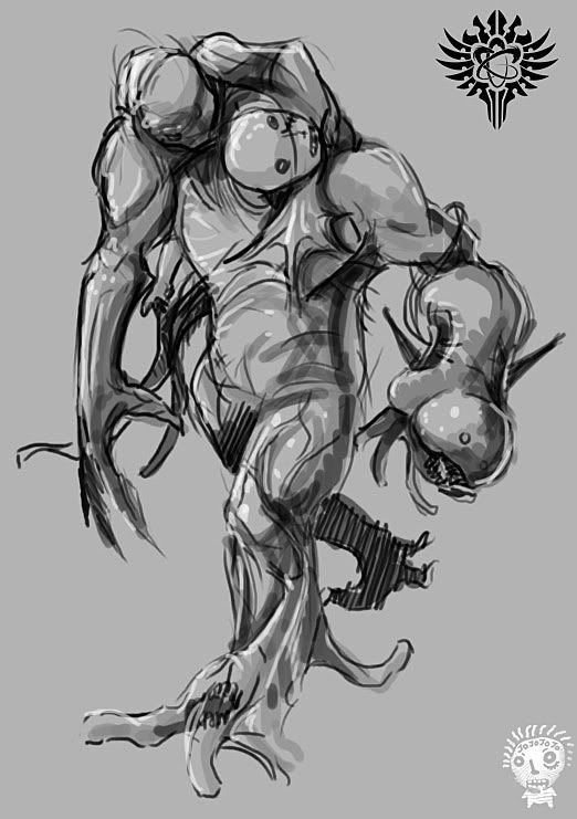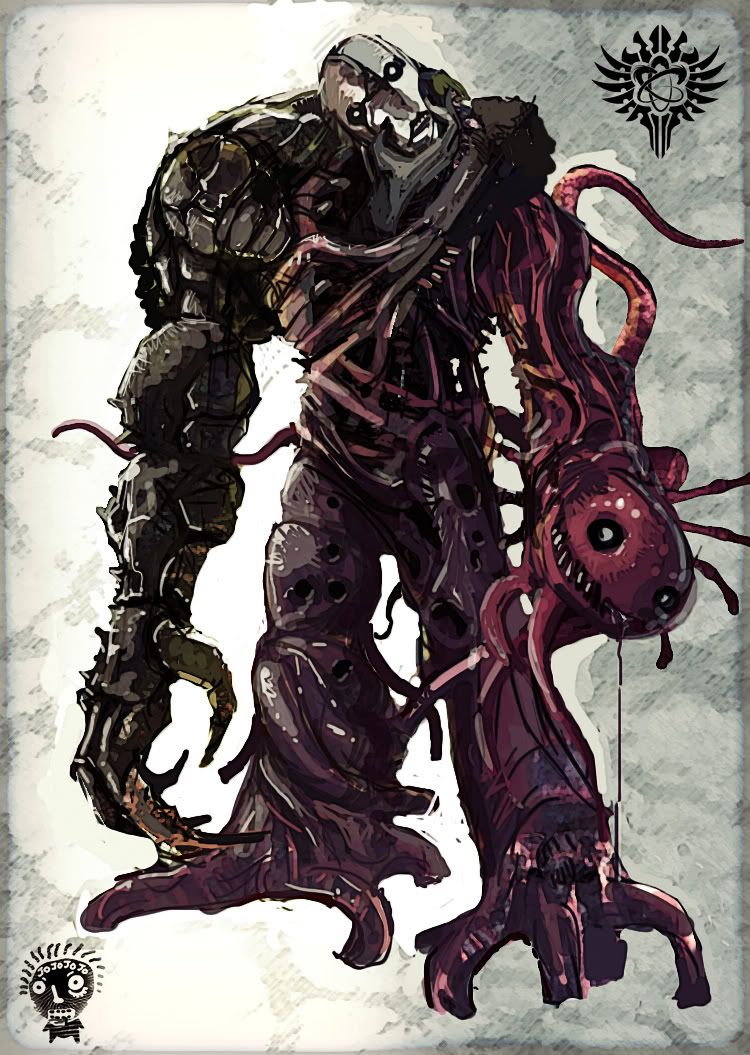 I think u can still exaggerate proportions of the abomination. His left arm and shoulder seems slightly bigger than other parts of the body. Since the other arm looks like its alive and/or has a mind of its own, i would suggest to make a 'nest' for it where the arm ends.