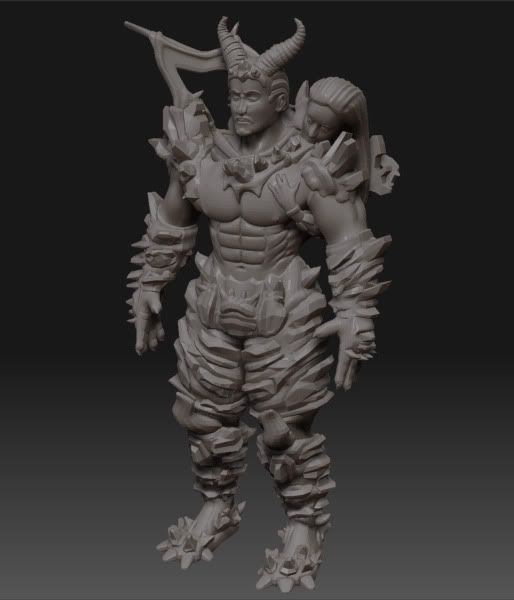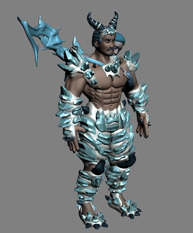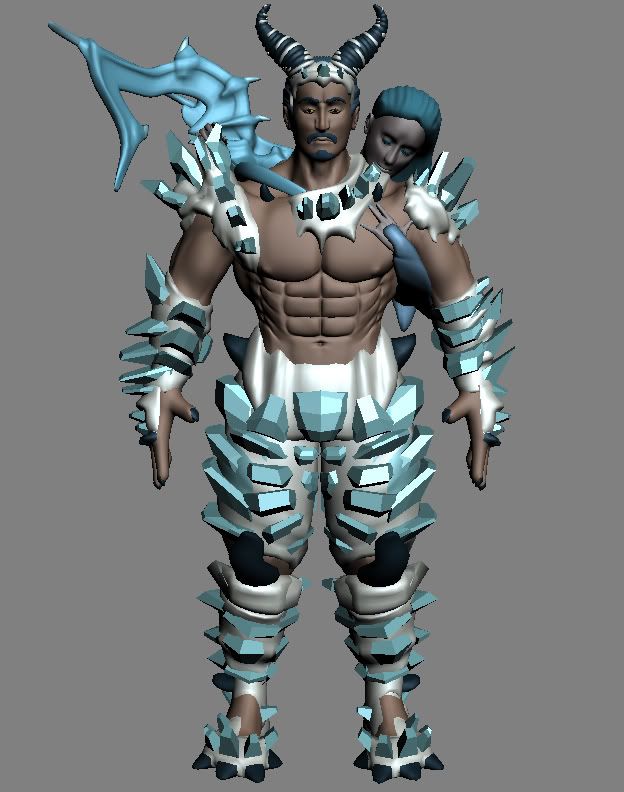 Tritigon is a demon with bones of ice. His lover was a fire demon named Hefriti. In order to be able to touch each other without causing severe damage, they had someone from another race cast a magical spell on them. This magic came at a high cost. Each had to cut off one finger to give to the other to wear as a magical necklace. During a long battle a norm cast a spell on Hefriti. Tritigon grabbed her and took her from the front lines. During the escape, the magic attack became distorted because of the magical necklaces. Instead of killing her, it caused her to be absorbed into Tritigon's body, instantly turning her also into an ice demon. The trauma caused her to sink into a coma. Now, with Hefriti gradually receding into Tritigon's body, he races time to hunt down the norm who cast the spell, and make him reverse it.
