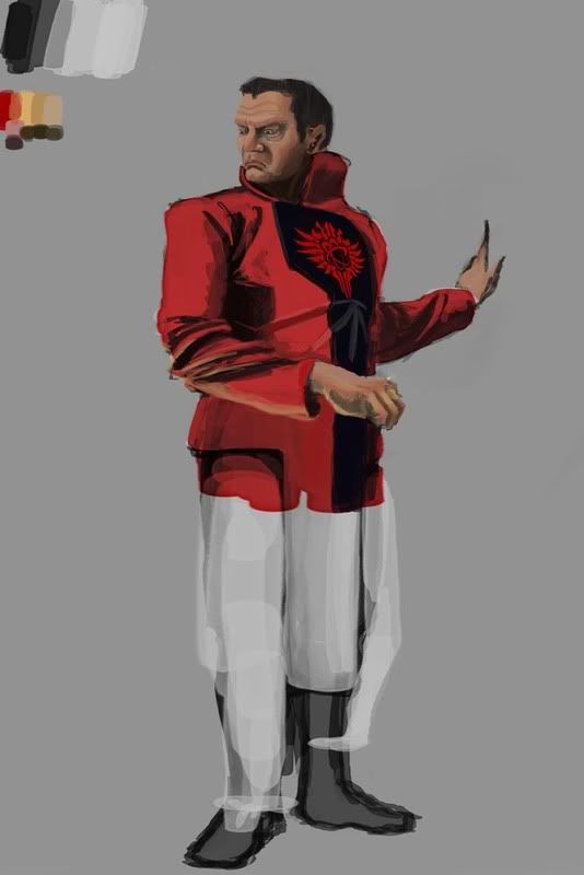 The originals that I was going to submit were going totally wrong, so I scrapped them yesterday and went ahead with a new idea. I was ready to give up on this one too in the silhouette phase, but decided to push on. The face is still not pleasing to me, but it’s getting there. The originals were too soft looking was the criticism I got. They were intended to be soft. Maybe this general is a strategist, rather than a blood and guts hard nosed kind of guy, but I guess I didn’t put that across too well in the originals.