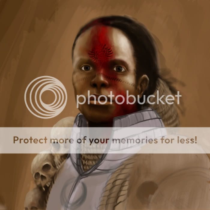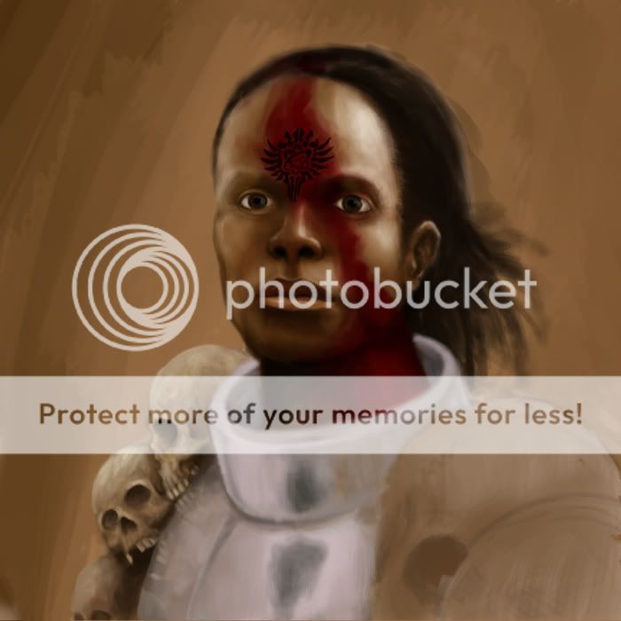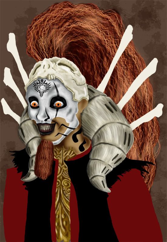 Und die rote Kleidung kannst Du vermutlich mit zwei, drei markanten Stellen so wirken lassen, daß der Kontrast noch hinhaut, aber der undead-look trotzdem paßt.