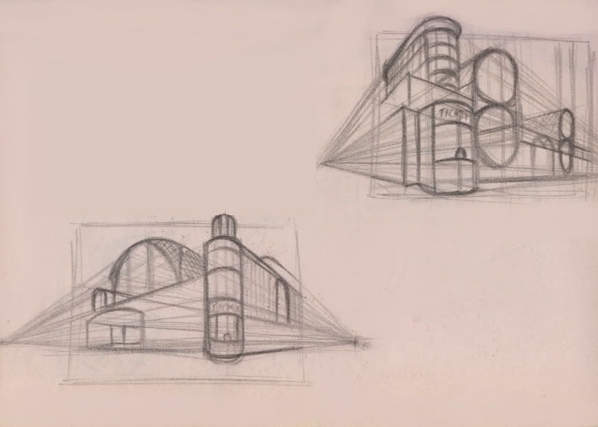 On the plus side, I drew a horizon axis and some perspective lines, and subsequently, this is probably the best perspective thumb I've drawn yet! :buttrock:Too bad it's so grainy.