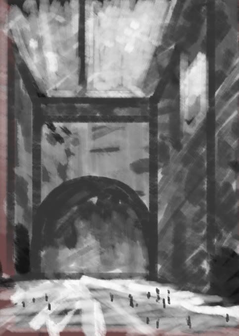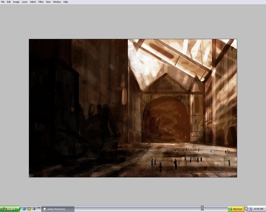 hi guys cleaned the third one up abit, and extended the canvas so as to see the hallway thingie, koshime, i was wondering how could i achieve like the type of colour that u did for the sky pier tutorial… and how can i speed up my painting, i seem to want to perfect the form of the object before i can just get the rough piece…