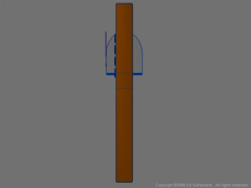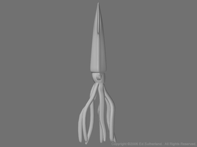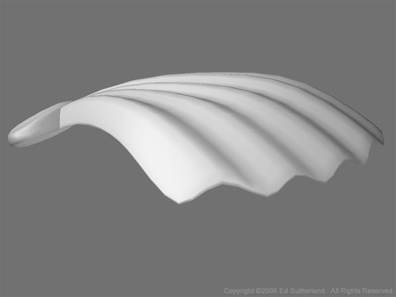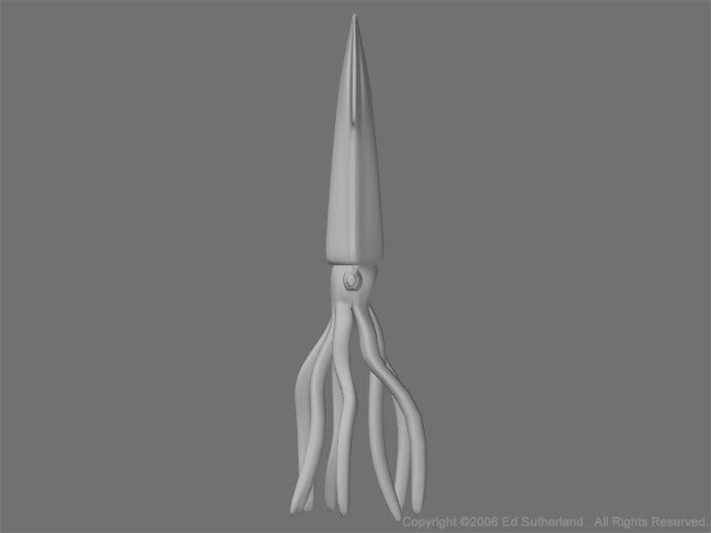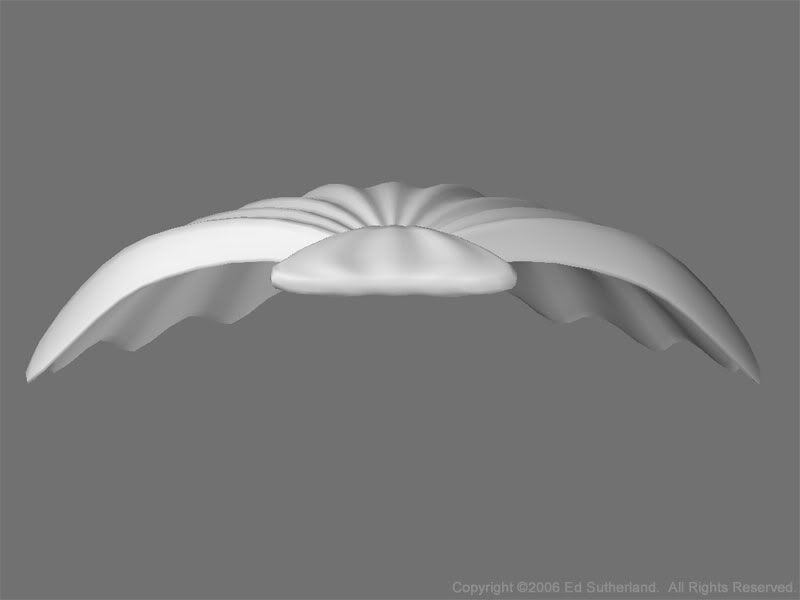 Other operations involved the melding of the left and right side lower support models, the shaping of the seat form, extrusion of the tapered points at the top of the chair, lengthening of the two back support spikes, and the finishing of the forms at the foot of the chair.