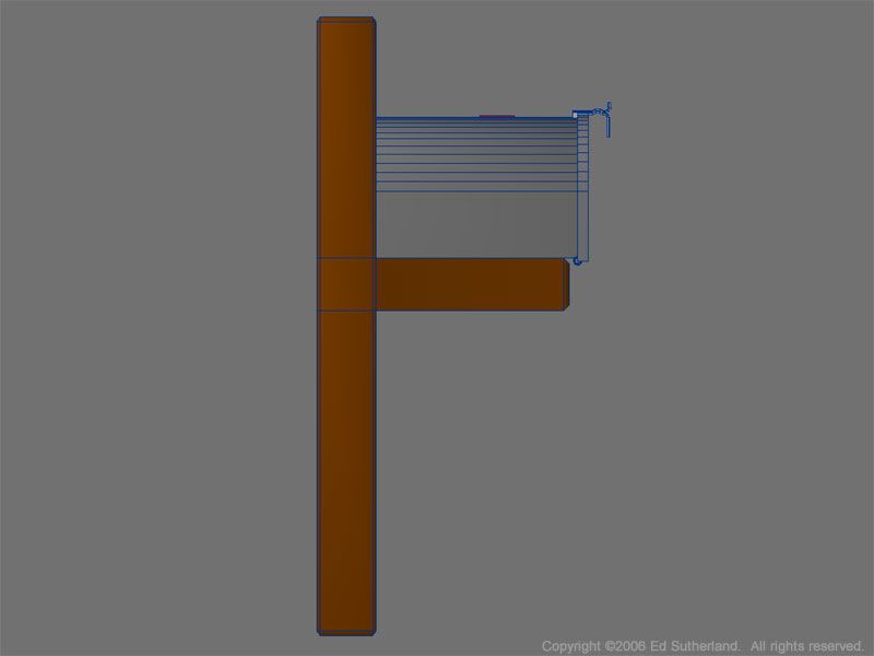Model number seven, and the first model created for this competition using a combination of straight high-polygon and subdivision surfaces. I’d been considering several different ideas for a designer chair, but hadn’t really settled on one. Then, after about five days of various frustrating and annoying occurrences, I sat down in front of Lightwave and channeled all the frustration into creating an incredibly uncomfortable-looking piece of furniture.