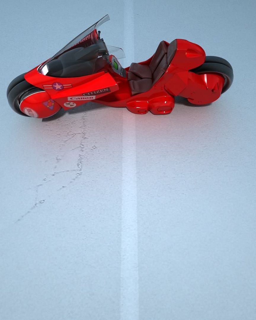 Ok bike was done last night, managed a road this morn. Currently doing the sticker and logo work in pshop, then onto Kaneda. Dont think ill have time to make the lazergun by tonight tho.
