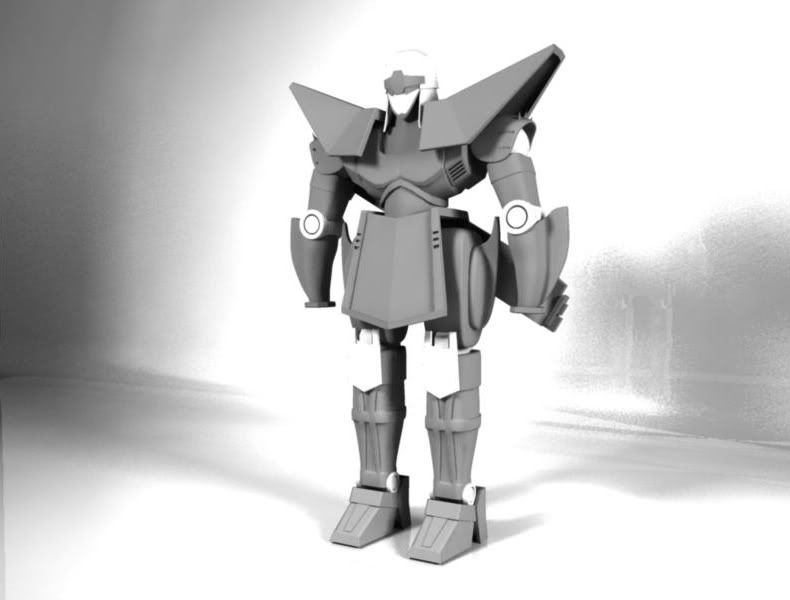 ok i got to model sometime today since school is choking me. I feel like I won’t even make it since our finals are well, on April 14! great! and deadline for this challenge is? April 15th right? I’m a gonner. The challenge is really fun I learned alot and was pushed to the limit of what I know but I “feel” like I won’t make it. I mean I still have to learn how to render properly, and I still don’t have a nice scene. I mean it’s in my head but I just can’t make it on computer. Sucks. Anyway I tried out this studio rendering tutorial on Cybertron, I wanted to learn how to do one and wanted to see how he’d look once rendered in Mentalray. So here are the results. C&C will really be appreciated.
