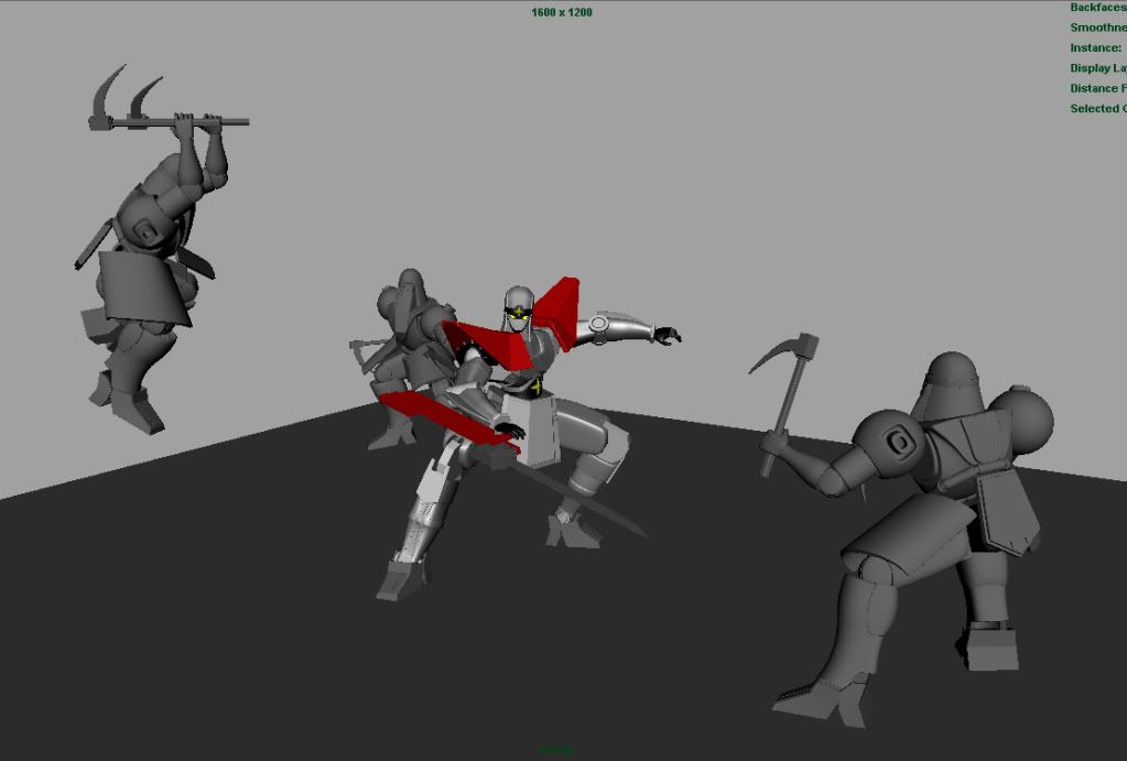 hhhmm i think what’s striking you is the main dude since his pose is that he isnt bending down enough like a ninja on defense. have hard time moving his body around so he isn’t bended much. As for the suggestion thanks! well i did a few sketches of an alien interior, Predator like if you see it, though I tell you the only reason why i didn’t push it was because a.) i suck at uv mapping :argh: and editing in photoshop. You know, putting up the background image and rendered models together So i wasn’t able to push thru.