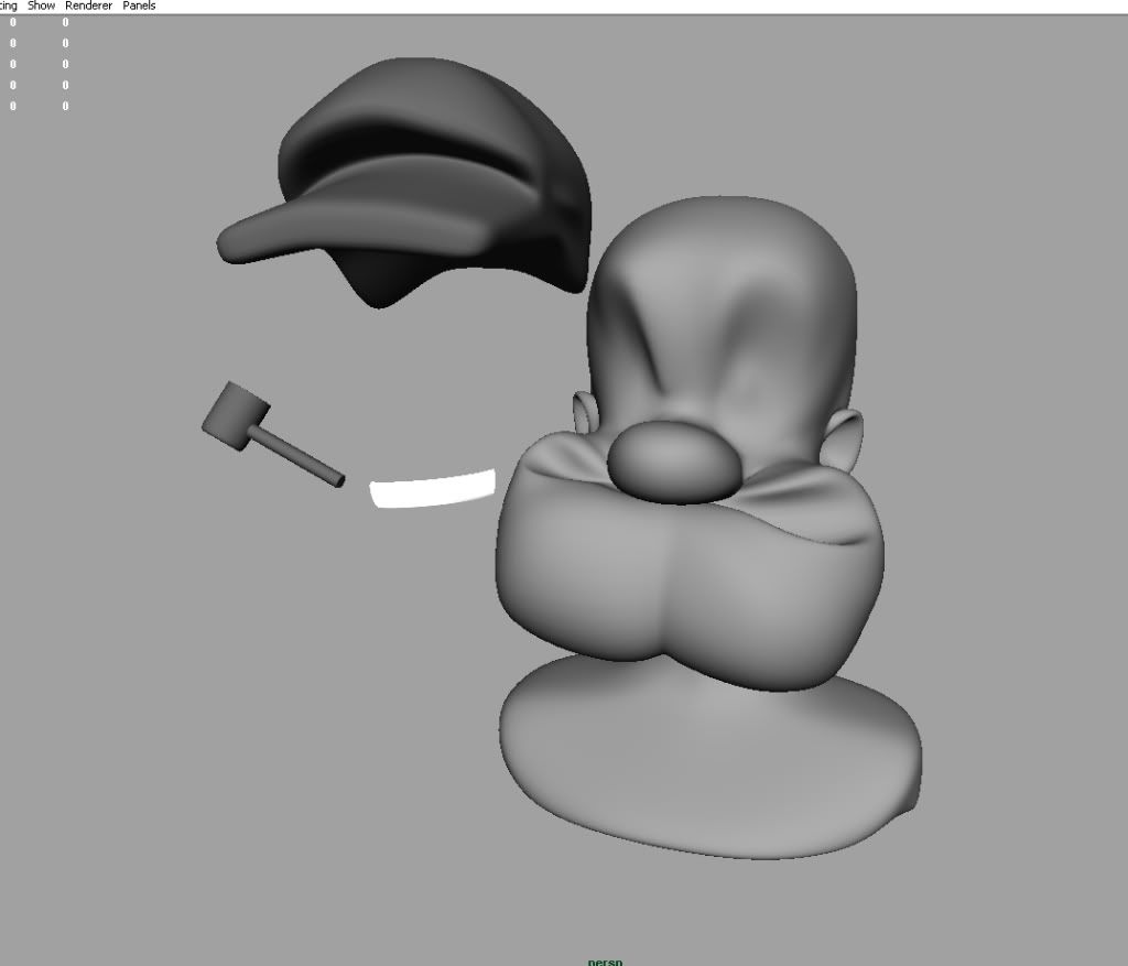 …so I did some changes in the face…and now ,in Maya I’m setting up the pipe, hat and teeth …