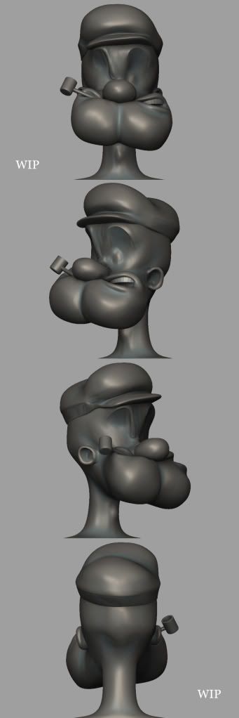 hey guys …I’ve been working on popeye’s face I started in Maya…and then zBrush