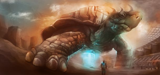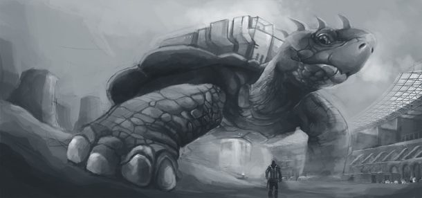 Hey all, This is my first post in this forum, I am benkulino (nickname), came from Indonesia. So after I looked around, i wanted to post my last WIP. This picture is currently in BW process and finished around 60%. The focal point is the giant turtle that have a cockpit room in his shell. For the background i want to make this scene look like in a race with a sandy environment near the giant. Below I included my process and reference image that i found in google