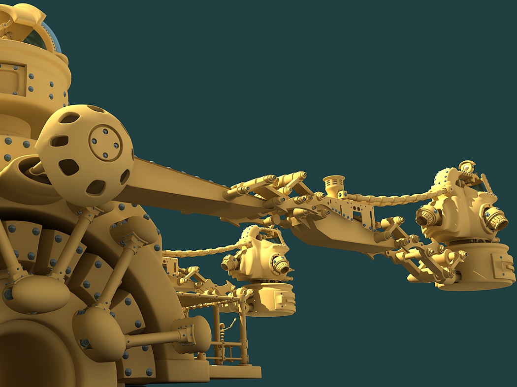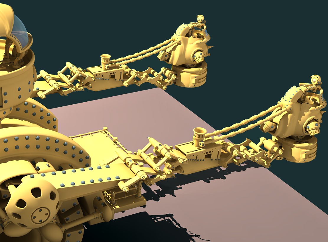 My only comment would be the distribution of detail. Some of the minor densely detailed areas (gun and platform area) contrast a bit with the larger, more undetailed areas (like the wheel)
