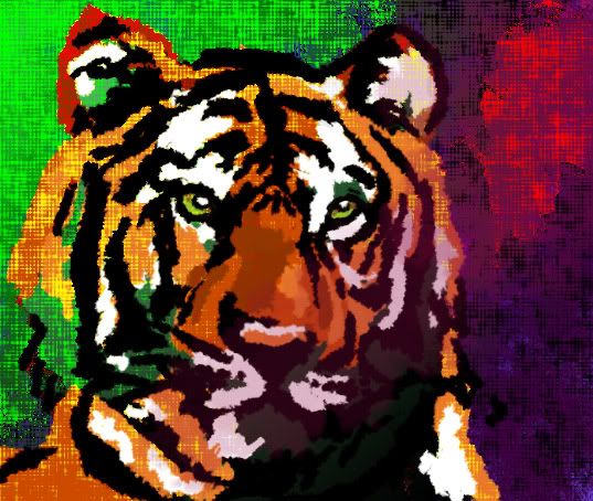 i feel the green is a bit dominant, clashing with the orange somewhat. i would go with the reds and blues and perhaps a sharp green accent. great texture though.