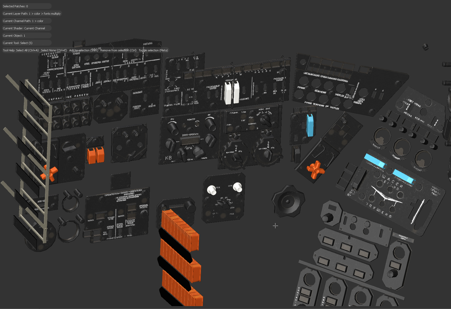 No renders tonight until my Titan Z is up and running. I got the UVs for all those panels and little parts done and started throwing some dirt and Russian words onto it. Still WIP as always but I am making some good progress.