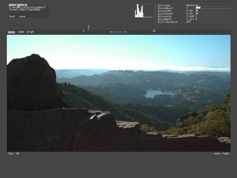 Playmesum; “writing a compositor is easy. It’s writing the DG/caching stuff that’s hard”. I agree. Currently, I have 3 classes for nodes; 1. creators (file in, perlin noise gen., particles, etc.) 2. shaders (bicubic filtering, blurs, gamma, paint, etc.) 3. layer (with simplish photoshop-style A/B overlay modes). These have all been simply tested by themselves, though not integrated yet. To gain max. speed, I am forgoing pBuffer callbacks to system RAM. Caching will simply exist in the form of writing nodes to disk (right click in node view), so no RAM caching will take place. The current flow is; Image in(from disk)>scene file input>downstream nodes (shaders)>render to screen. In the DAG, I will be creating 2 states for the nodes: view and edit. The user can happily view one node while editing another. “You don’t seem to have left anywhere for it to go in your mockup” In the upper left corner of the image window, there are 3 buttons; image, node, graph. These will be selectable with numeric keypad (1,2,3), or by simply clicking on the buttons. The graph editor will also have a smaller image-viewing window. I don’t want to have them all scrunched together for a variety of reasons. The primary reason is to have the image viewing area be more like a moving artist’s canvas, free of spreadsheet-like clutter. “Most of the gui logic could quite happily live in python for example” Will look into this today-- have written more Python than C++ lately, but have an extensive library of C++ code, and not yet sure exactly how to integrate the Python-- will look into it. Cheers !