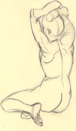 Really, this thought is for everyone including myself. Drawing the curves of any object, as Rebecca constantly beats us over the heads reminding us, is very important. I often find it useful to consiously exagerate some curves. Almost always as you paint, an exagerated curve will slowly become less exagerated. I don’t know why we have this tendency but it seems to be quite universal with artists. I also find, depending on the medium, that drawing curves with larger sweeping lines will help them maintain their shape. small and forced lines will also soften as you paint becoming formless. paintings of fabric tend to show this problem very well, but it is also applicable to most subject matter. I hope that might have made sense, It is very late and i really had better head to bed.