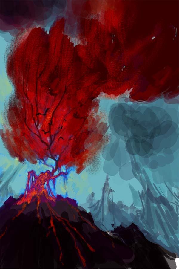 One suggestion I might have would be to potentially overlap the two figures a bit more / give the giant more of a forced perspective. Think of where the viewer’s view point is and maybe block that out in terms of perspective blocks ~ the giant, I think, woud recede a lot more in perspective than he is doing now. My 2 cents.
