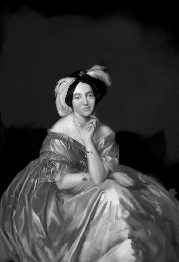 A small update: her mouth is off at the moment - mainly worked on her blouse and some highlights on the left side (looking at) of her face. Hoping to find more time very soon as itās a great workshop!