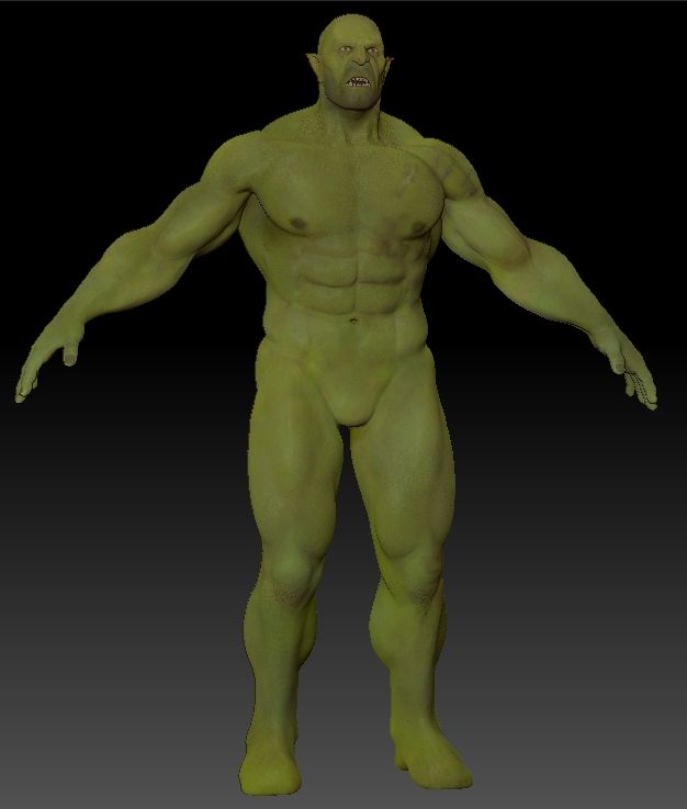 I think the modelling of your orc could still be improved a little. The mouth, in particular, bothers me a bit, because it just looks like it was modelled that way, as opposed to being open because he’s, well, opened his mouth. Does that make sense? I guess it’s a lack of tension in the facial musculature that we’d expect to see with a screaming/scared expression. I’d also expect to see wider eyes to accompany that. Perhaps doing a stronger sculpting pass would help to define the facial muscles a little better for this. I agree with an earlier comment that he does rather amusingly look a bit like Jason Statham, heh.