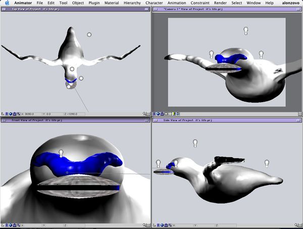 It was a very small low budget job for a Local Access Producer that just turned into a monster. What a load off that I'm done with it today. He loved it of course...for the money especially. The nice thing is I resolved a long time problem I was having with Renderama. Two cameras are running on both processes again my G4 Dual 500mhz.. I think that that a very cool thing about running Renderama in OSX and helps my render time. That's another long time load off.