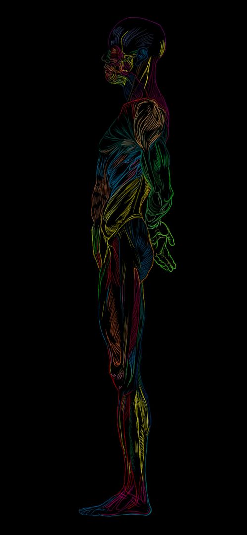 This one is my favorite, its very interesting to see how you have highlighted the muscles with all this colors.