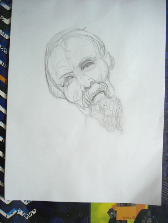 It will be a good idea to look at your drawing in the mirror from time to time to check for orientation problems… For example, the old man’s head has the appearance of being turned a bit towards his right, but the nose is pointing straight at you, and also you should be seeing a bit more of the left jaw bone at this angle. The girl’s head is beautiful!