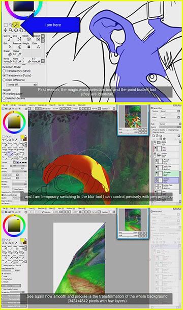 -the second video (10’00") shows color filling process which is more effective than what is inside Photoshop at the moment (it is explained in the video). The video shows also an amazing way to control gradient especially good for cartoon work (technical demo here and there).