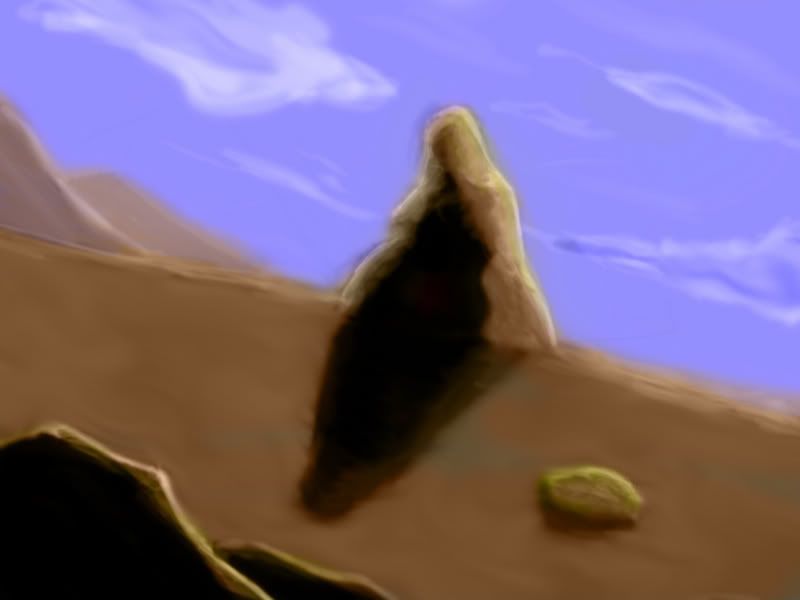 Thats real nice! nice colour and atmosphere. I think its worth investing a little more time in defining the distant rocks a little more