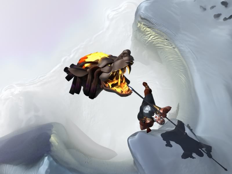 Odin here is leapind down to kill fenris with his spear. Ill switch round the head of the wolf so its not easy to assume somthing is getting toasted that shouldent.
