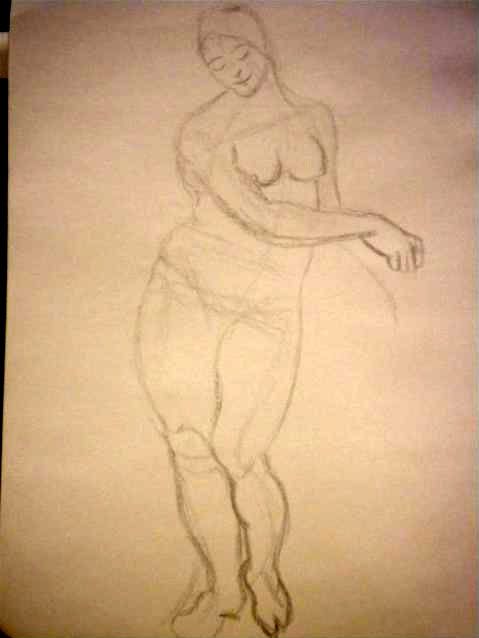 The photos I’ve been taking aren’t getting the light base work that I do so I had to tweak them, they don’t look that great but should give you a basic idea this is from Leda and the Swan… You cant really see the lines I put in to remind me where the top and the bottom of the drawing would be, or the 3 lines of shoulder/ribcage/hips. I’m going to keep working on this in the way I’ve been doing but look forward to gaining insight on what I should try, or change.