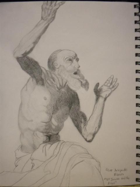 I’ve been busy, and more than that, this latest drawing took me a very long time to finish. Another torso study, from Jusepe de Ribera “St. Jerome and the Angel”