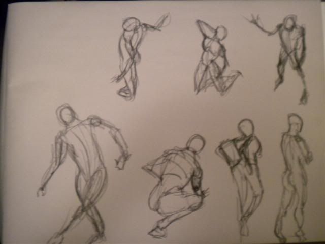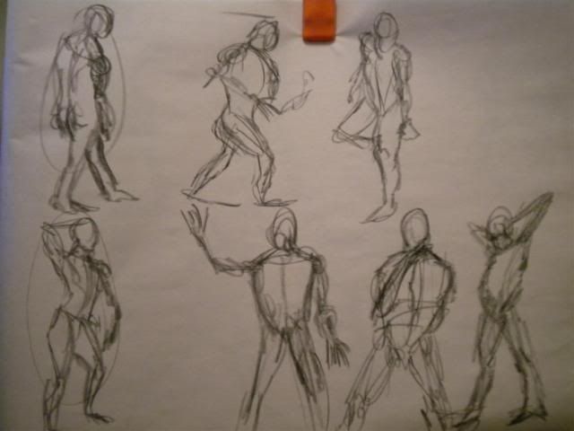 I’m onto the next block of Nicolaides’ lesson plan, which is part contour drawing part gesture. Here are my first batch of gesture drawings (30-45seconds each).