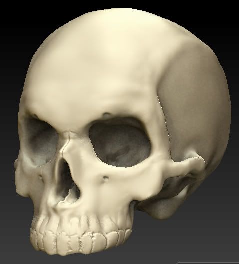 I’ve started working on creating a skull in Zbrush. The long term goal is to eventually attempt to construct an entire skeleton and then an ecorche over that.