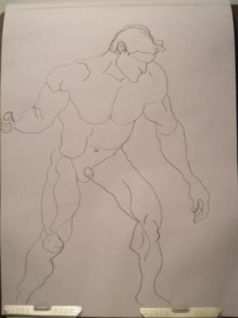 This one is by far the best sketch I’ve done lately, and it took me 30 minutes to get it to this point. I am going to try and shade it despite the fact that it’s still not positioned properly. I’m enjoying china markers, the lack of erasing makes me put down each line with certainty.
