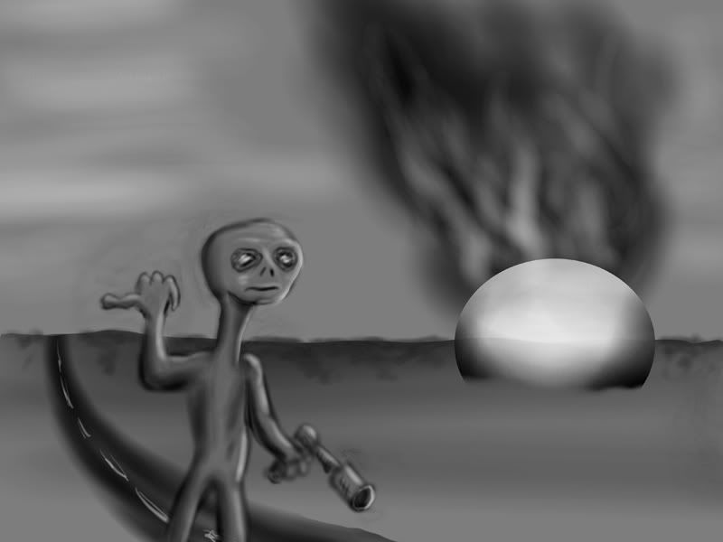 I tried to imagine an alien from the movies taking over a tree instead of humans. I don’t think this one is very successful, it was mostly a struggle with some unfamiliar tools. I was also trying to work by starting with mostly monochromatic color. I don’t think that works for me. I will be going back to doing a grayscale image and then coloring it.
