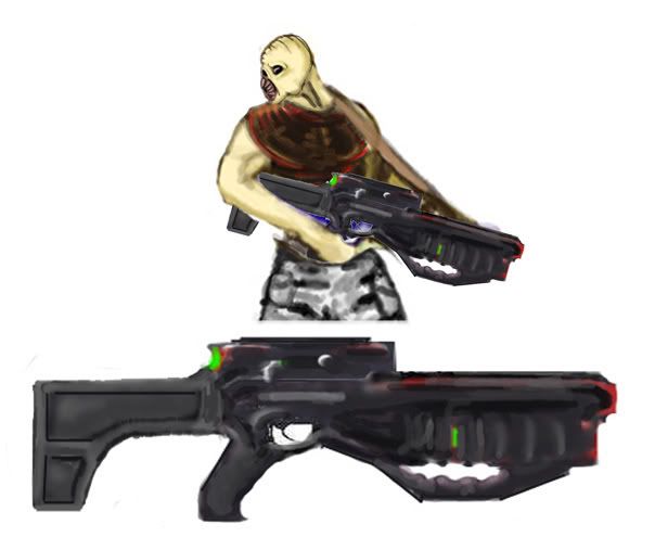 after some weapon variations sketching i decided i will stick with this one. its hard to see but what i did is taking an old classic kalashnikov (ak-47) and painted over it to make it look more modern/futuristic… now its an ak-97