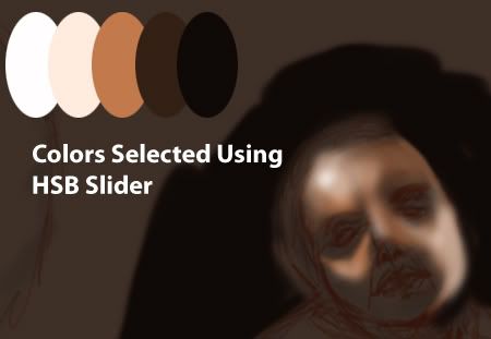 Even light skin is actually rich and contains a range of values, ranging from the very dark to the relatively light, but the trick is not to overwhelm light skin with too many light values. The results always end up looking washed out and unnatural. My suggestion is to use the HSB slider (Hue, Saturation, Brightness) to select a range of tints and shades of a particular hue before starting, and creating swatches from which to sample by alt + clicking them while in brush mode: