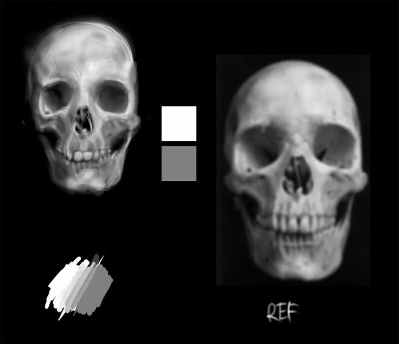 at one end. A face and skull are very simaler. Also study how the light and shadows appear