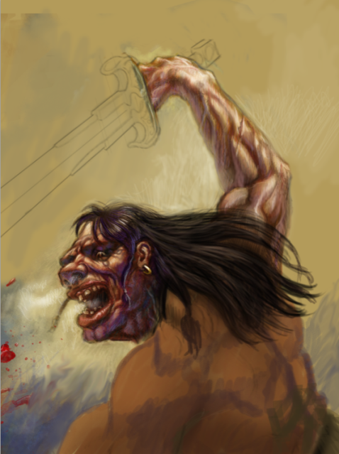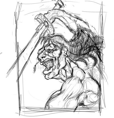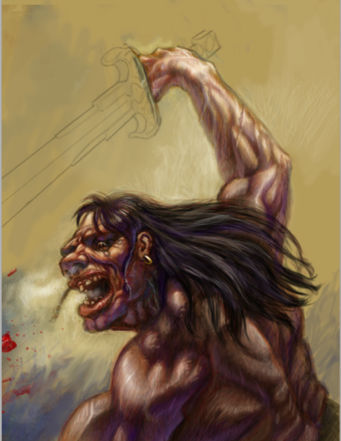 One issue with anatomy to keep in mind is that not all muscles in the body will be fully flexed to 100% intensity, nor will they all bulge with maximum bulk. Some muscles have more volume than others, while others will bulge less, no matter how hard you work them out–they’re simply flatter in shape. What you tend to do in your image, is to bulk up all the muscles indiscriminately, and that will make the figure look too exaggerated, missing the natural variations we’re supposed to see on a body–even a very muscular one.